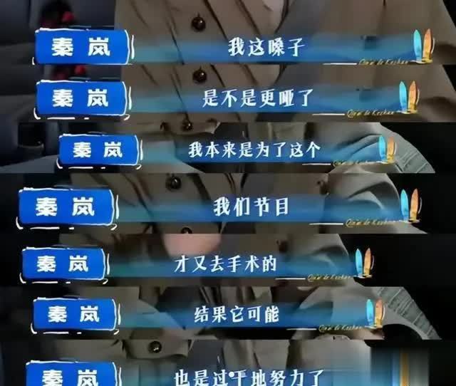 更令人心疼的是,秦岚为改善嗓音去做手术,结果手术失败,声音变得更沙哑了。她自己也打趣说现在的嗓音像狼外婆,不仅身体状态下滑,情绪似乎也受到了影响。大家都为她的健康状况忧心,愈发觉得这段感情走到了尽头。